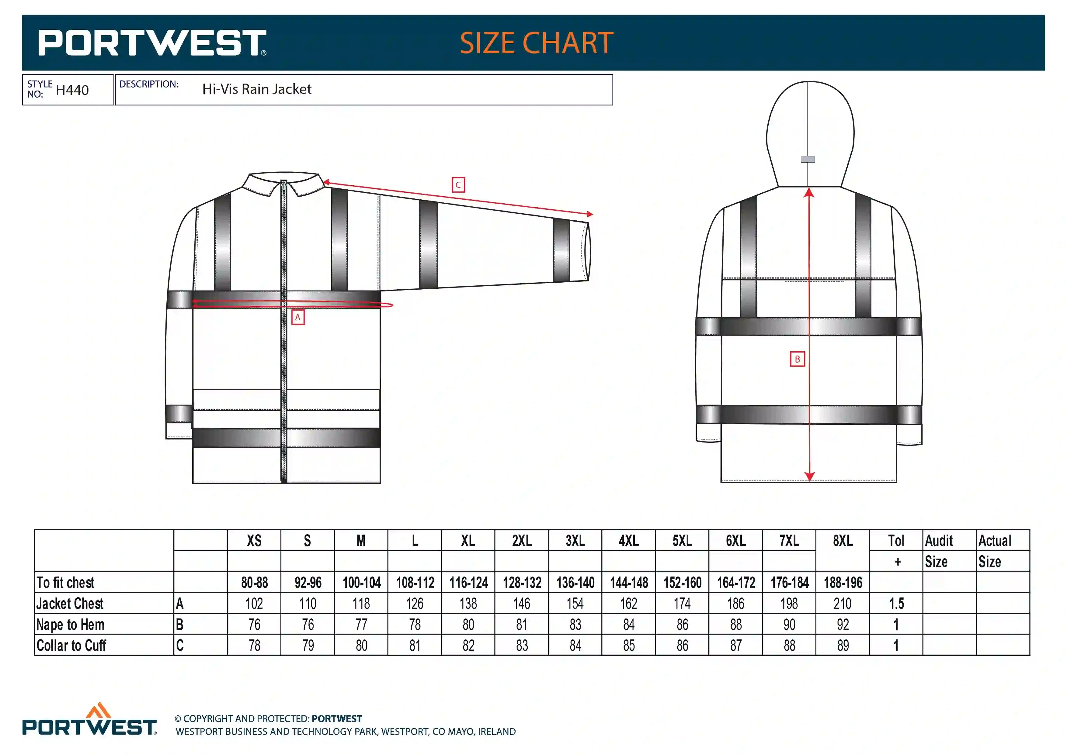Designed to keep the wearer visible, safe and dry in foul weather conditions, the Portwest Hi Vis Rain Jacket is extremely practical and waterproof. It offers exceptional value for money and can be perfectly matched with the H441 Hi-Vis Rain Trouser. This garment can be easily rolled up and stored when not in use.