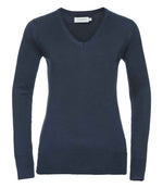 Russell Collection Ladies Cotton Acrylic V Neck Sweater